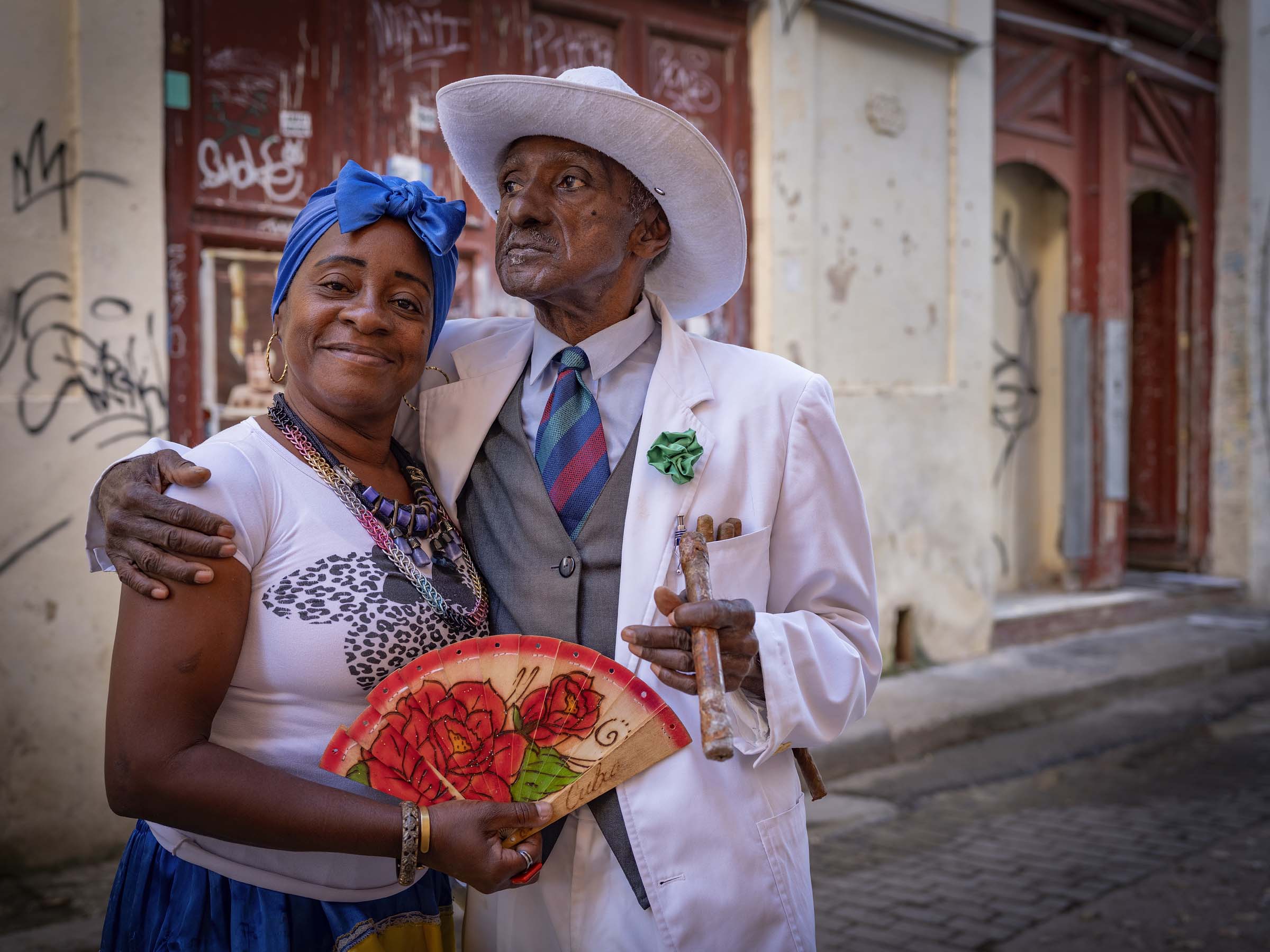 Dressed in period costume a Cuban couple offer tourists a glimpse into its Colonial past.