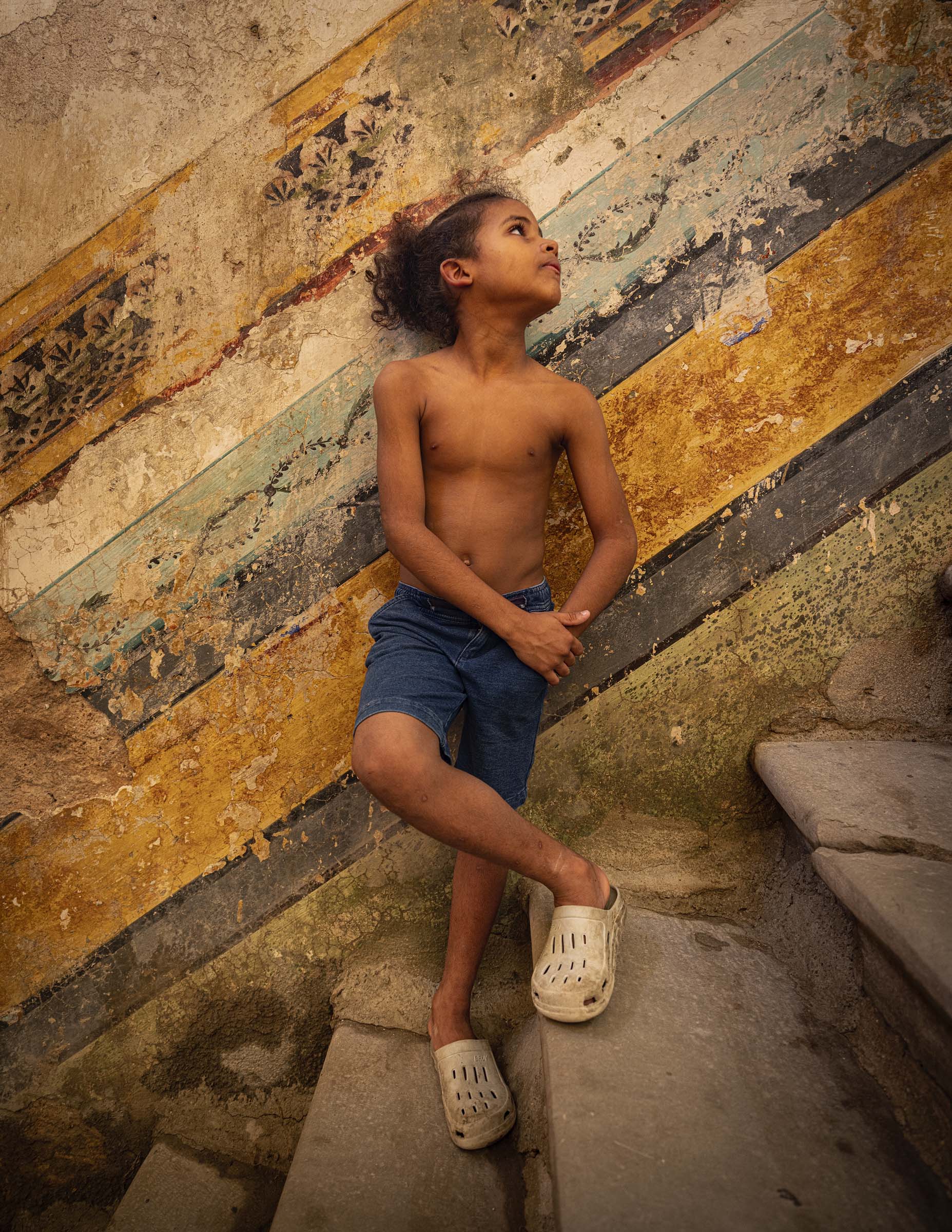 Christopher, 9, on the stairwell of his Havana tentament building.