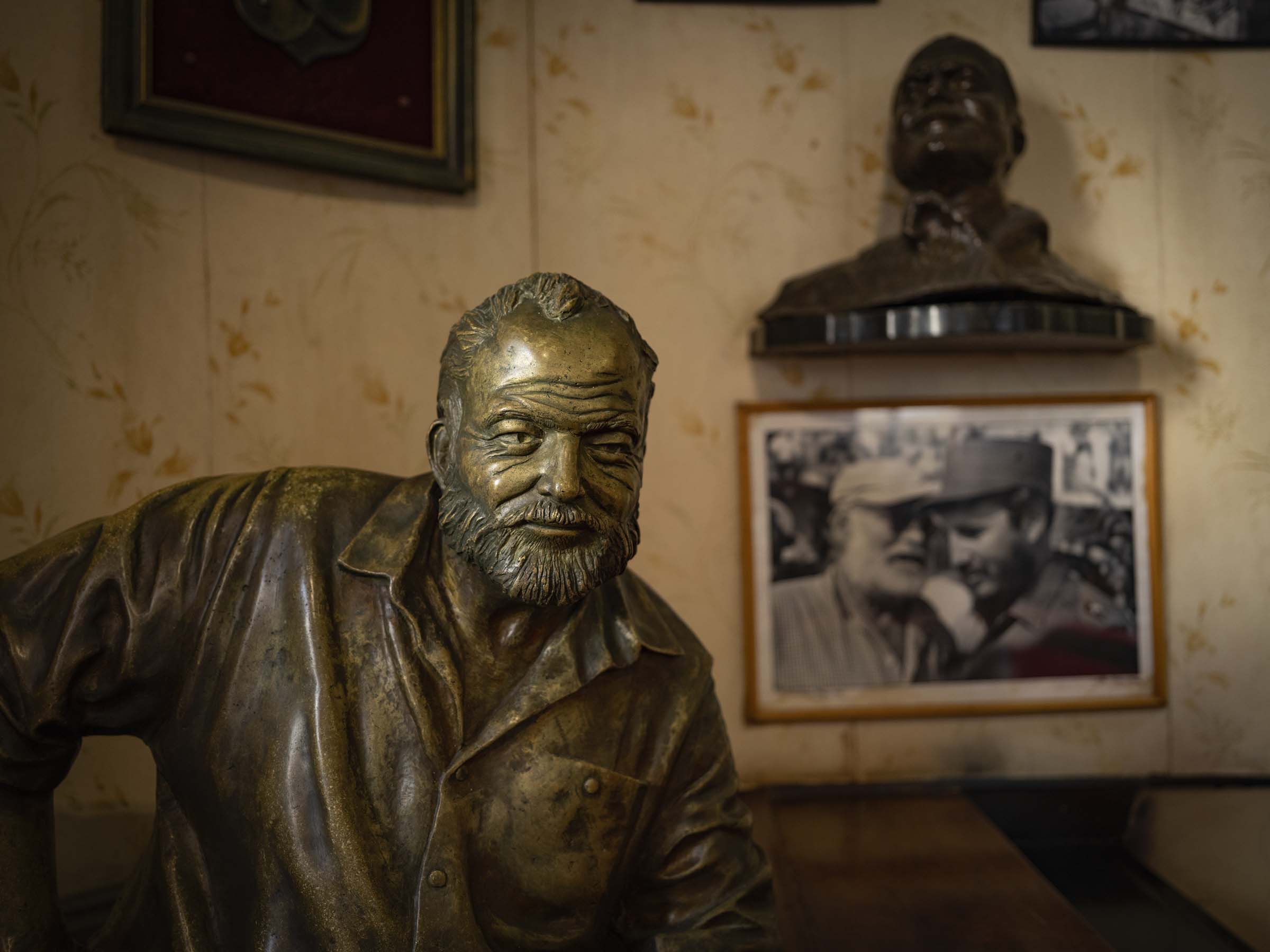 A statue of American author Ernest Hemingway stands comfortably at the bar in the La Floridita in Havana.
