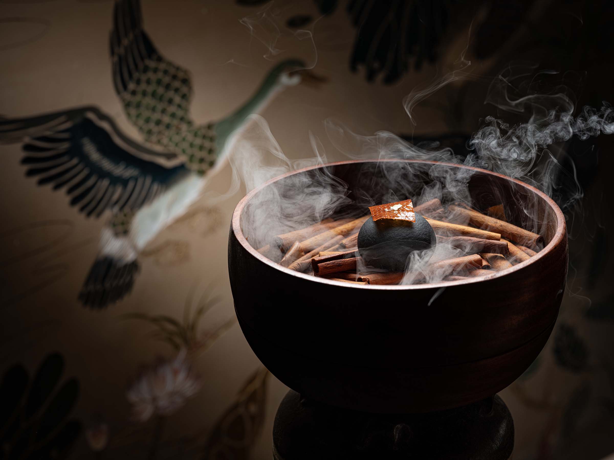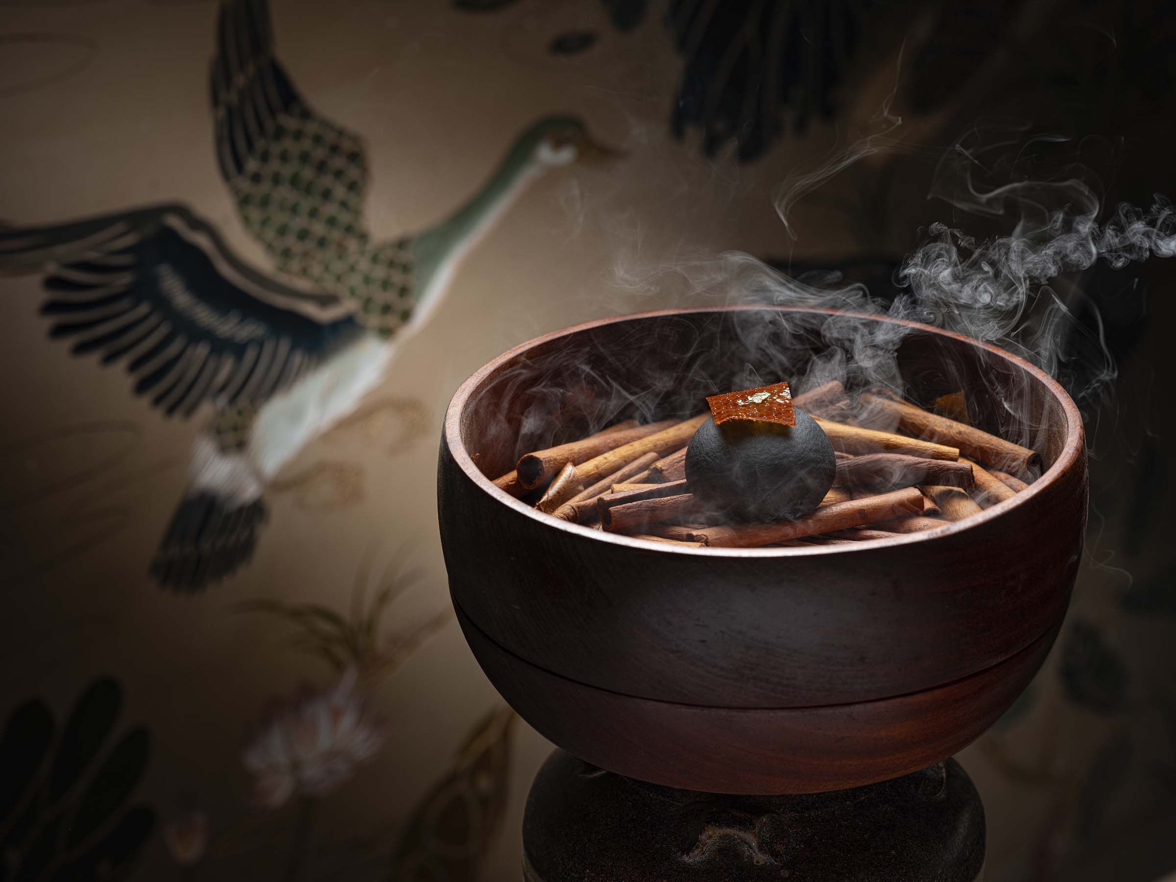 It’s a balancing act. Took a bit of engineering to get the bowl containing a savory duck smoked bun in just the right place.