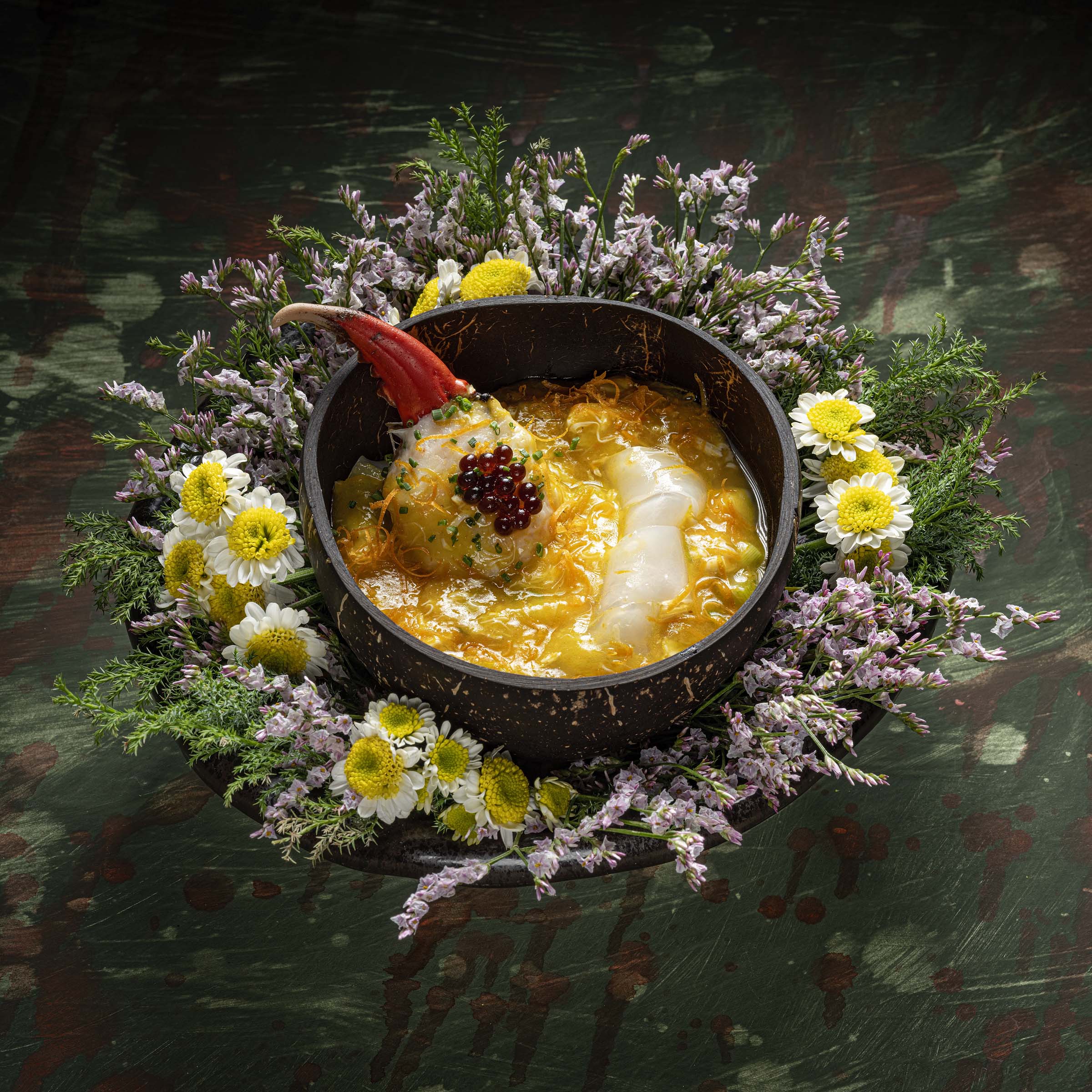 Char-Grilled Sous Vide Lobster with Assam Sauce.